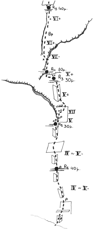 Η διαδρομή σκαρφαλώθηκε ελεύθερα για πρώτη φορά στις 16/8/2003 από τους Γ. Βουτυρόπουλο - Ε. Καραγεώργη - Μ. Στύλλα βαθμολογώντας το αρχικό A2 με VI+ / VII-.