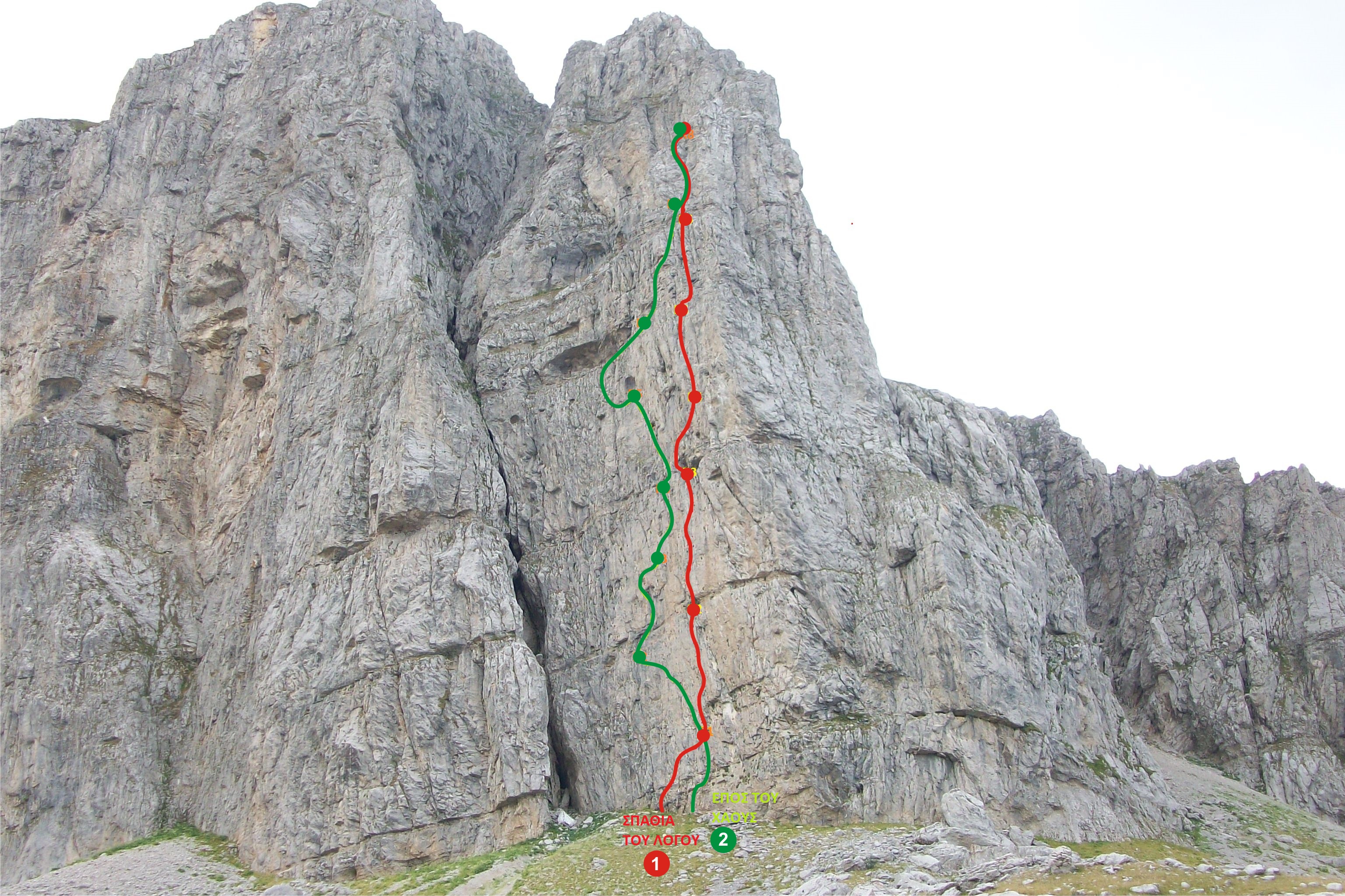 [1] «Τα σπαθιά του λόγου», [2] «Έπος του χάους». Η «Κόψη των Τριεστίνων» βρίσκεται λίγο δεξιότερα.