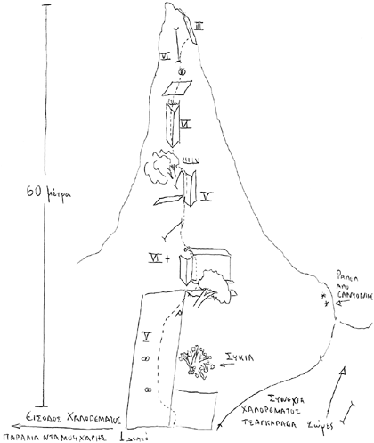 Η διαδρομή βρίσκεται στην παραλία Νταμούχαρη και κινείται πάνω μια καλοσχηματισμένη βελόνα, μόλις ένα λεπτό από την παραλία. Δεν έχει μεγάλο ανάπτυγμα, αλλά σίγουρα είναι ενδιαφέρουσα. Αξίζει, αν βρίσκεται κανείς στην περιοχή, να την επαναλάβει, αφού προσφέρει γεμάτο σκαρφάλωμα για 60μ μέχρι την κορυφή. Αν και μπορεί να σκαρφαλωθεί με μια σχοινά, προτείνεται να γίνεται σε δύο σχοινιές.