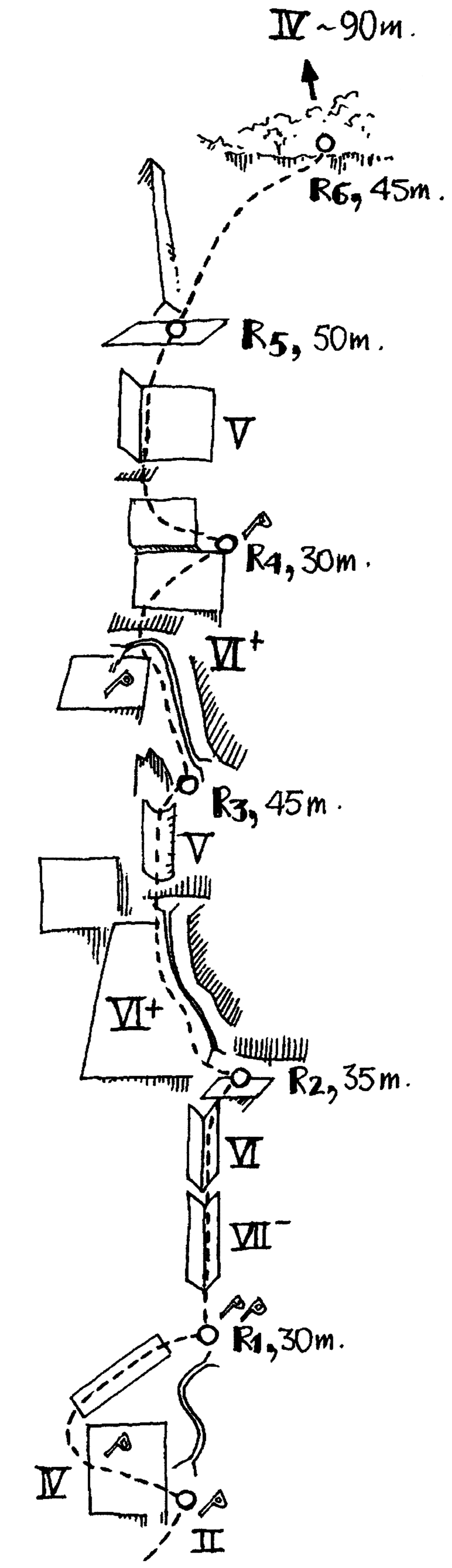 Το «Ουρλιαχτό της πεταλούδας» (VI+, 300μ) ανοίχτηκε στις 20/6/1993 από τους Γ. Ροκά - Δ. Κάλλο.