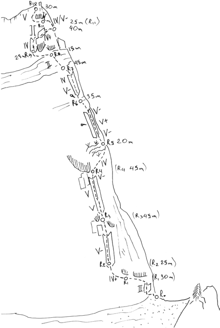 Η διαδρομή είναι ασφαλισμένη μόνο με 3 - 4 καρφιά και δεν διαθέτει εξοπλισμένα ρελέ. Απαραίτητα υλικά για την επανάληψή της είναι μια σειρά καρύδια, friends, καρφιά, 5 - 6 καραμπίνερ, 8 - 10 σετάκια και ιμάντες. Ο χρόνος που απαιτείται για την επανάληψή της είναι περίπου 8ω.