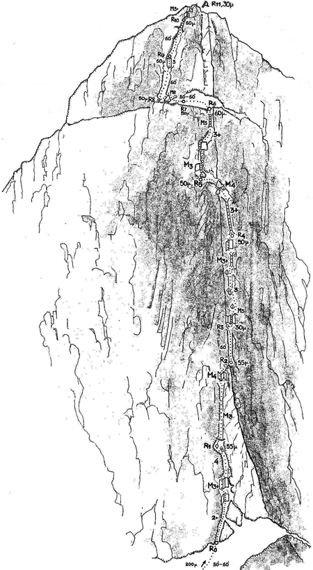 Μια παραλλαγή της διαδρομής (V+, 450μ) ανοίχτηκε στις 31/8/1965 από τους Γ. Μιχαηλίδη - Δ. Δεμέστιχα, σε 11ω, σκαρφαλώνοντας την κόψη από την βορειοδυτική πλευρά της.