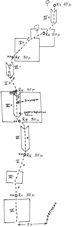 The first ascent of the route “Cleopatra” (VI+, 185m) was realized on 9/10/1988 by G. Agianniotakis - T. Koumoutsakos.