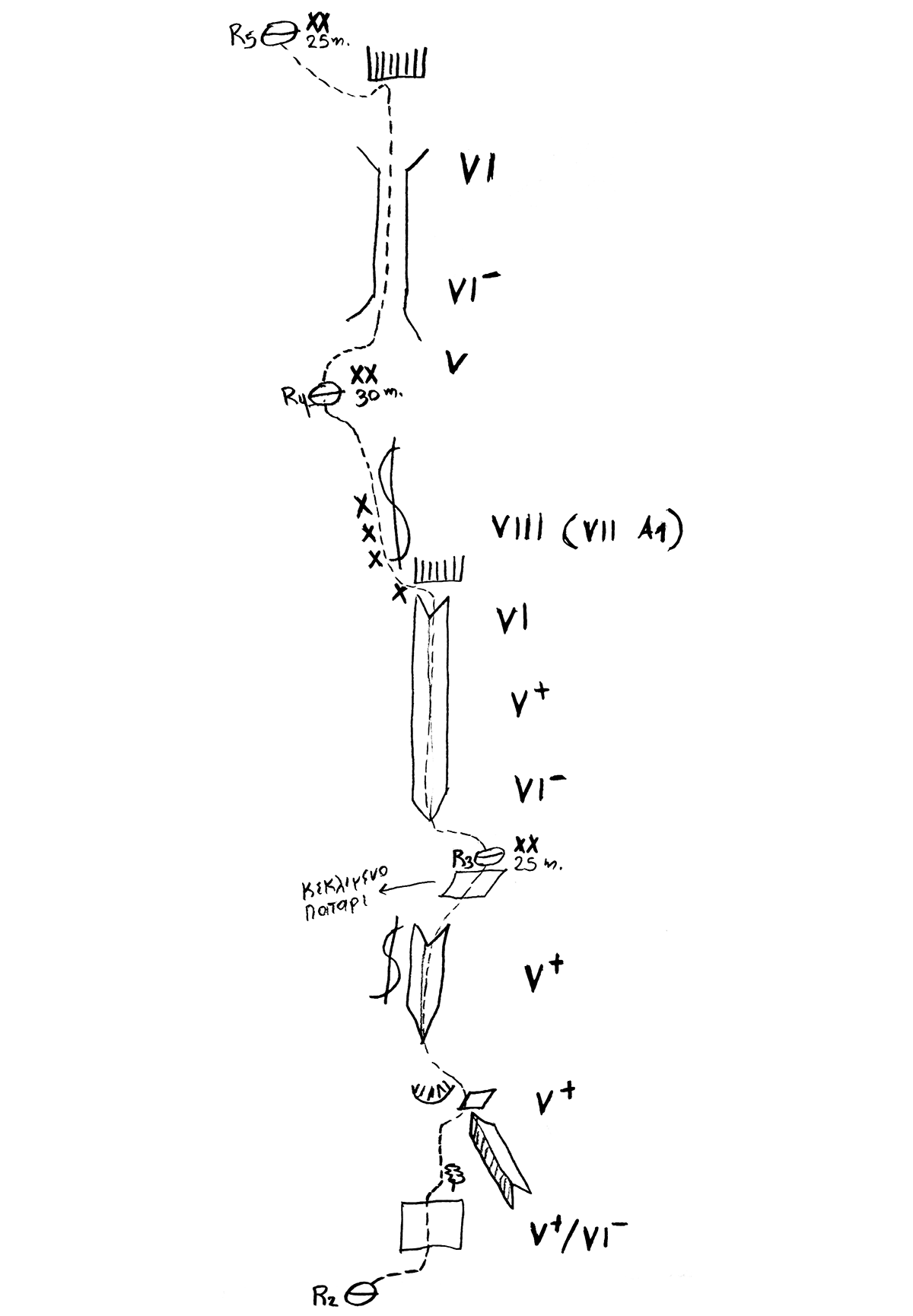 The line is located on the 3rd wall, to the left of the “Kopsi ton aeton”. The climbing on continuous crack-dihedrals as well as the exposure gives the route great aesthetic value.