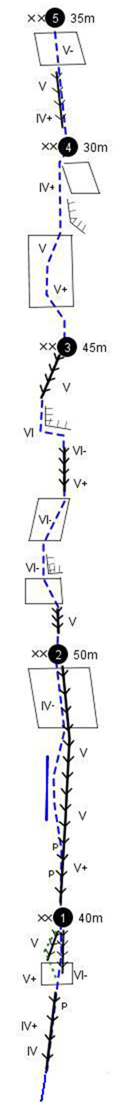 This route is one of the most classic of Varasova, offering climbing diversity and demanding good use of traditional gear, while it is mainly characterized by continuous dihedrals with small slabs and two roofs.