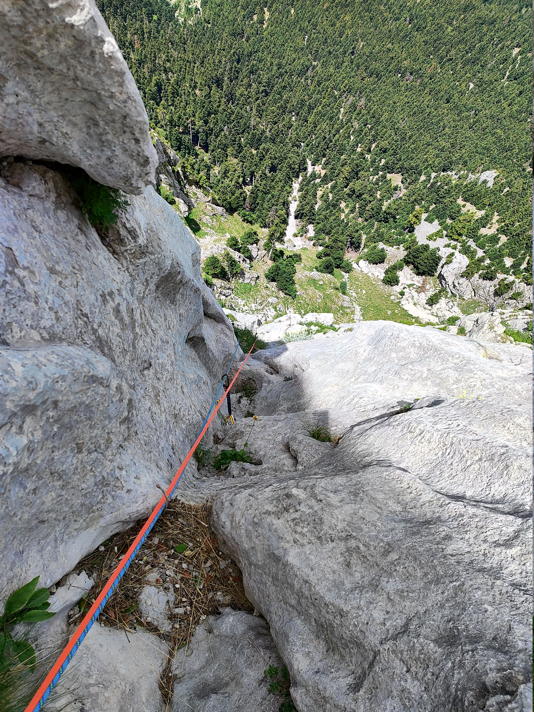A set of nuts, a set of friends and some pitons are necessary in order to repeat the route.