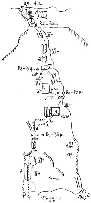 Το «Δίεδρο του άσπρου βράχου» (VI+ A0, 170μ) ανοίχτηκε στις 20/8/2000 από τους Θ. Χατζησυρλή - Γ. Κολώνη.