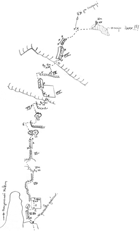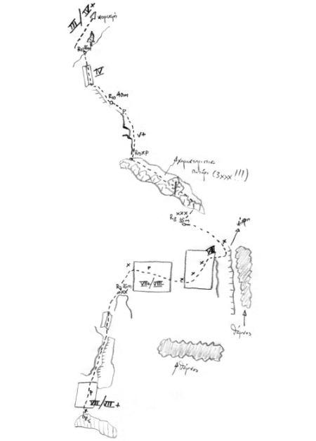Η γραμμή ξεκινά από το δεξιό μέρος μικρού πιλιέ που βρίσκεται ανάμεσα στην «Οικογενειακή υπόθεση» και την «Μπάμπης Τσουπράς» και ελίσσεται ανάμεσα σε δίεδρα και αρνητικά, προσπερνώντας τη μεγάλη στέγη στο κεντρικό μέρος της ορθοπλαγιάς, για να καταλήξει σε μεγάλο πατάρι και να συνεχίσει σε πιο εύκολο πεδίο.