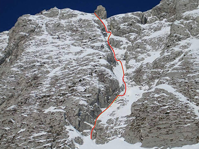 Πρόκειται για μια σοβαρή διαδρομή χιονιού και πάγου, με κατακόρυφα περάσματα στις μισές από τις 8 σχοινιές της.