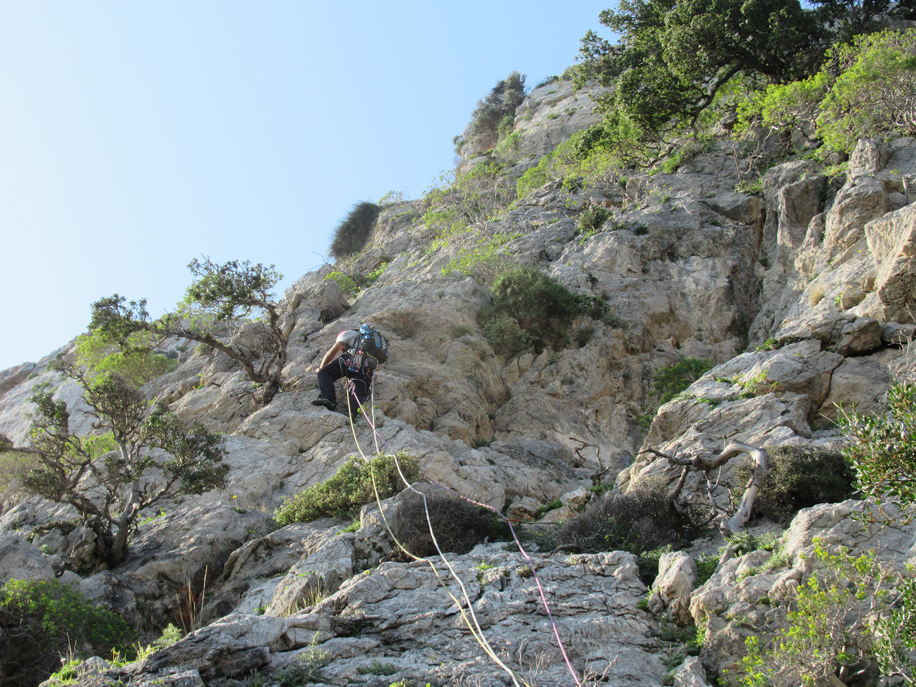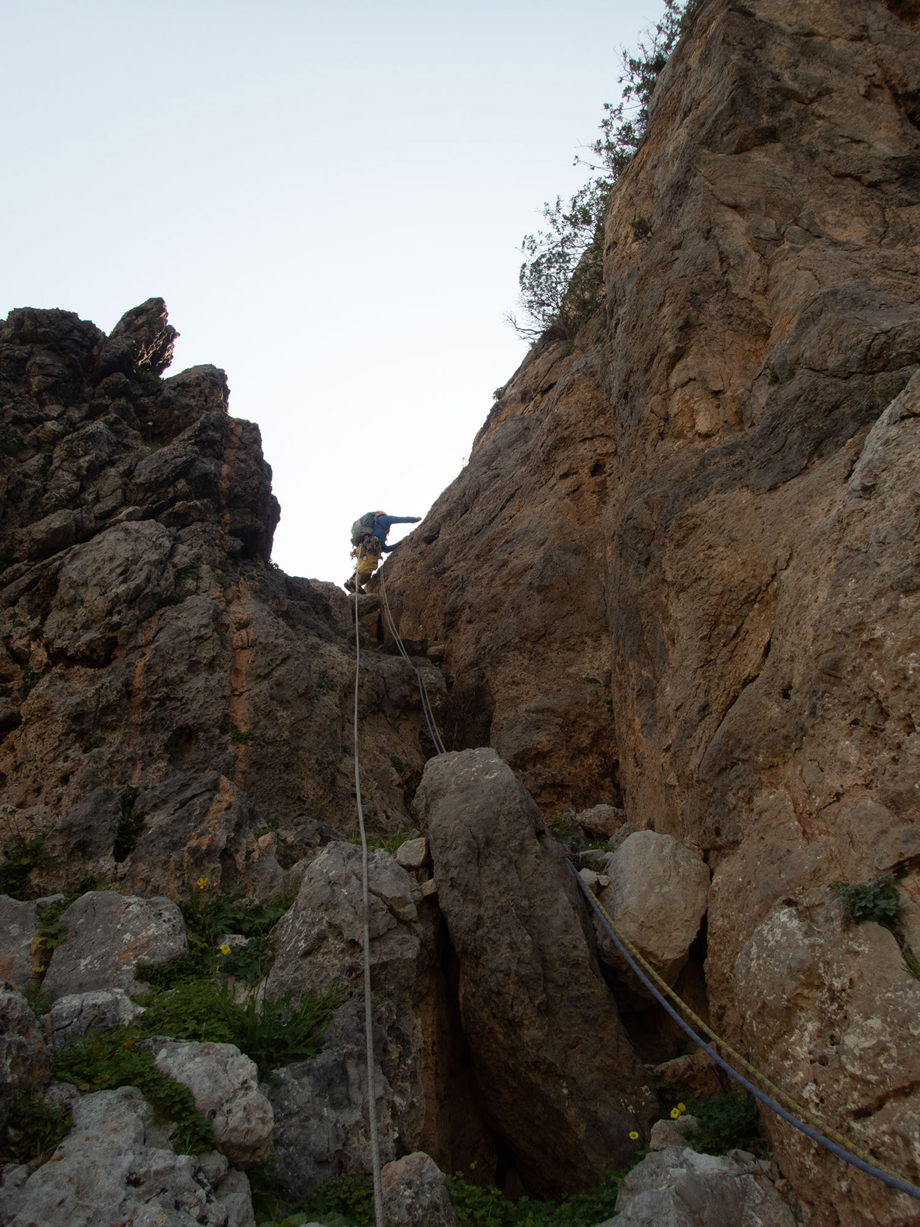 Για την 2η σχοινιά (V-, 30μ) ακολουθούμε τη σχισμή και καταλήγουμε στην κορφή ενός μυτικιού. Το ρελέ γίνεται σε δυο πλακέτες.