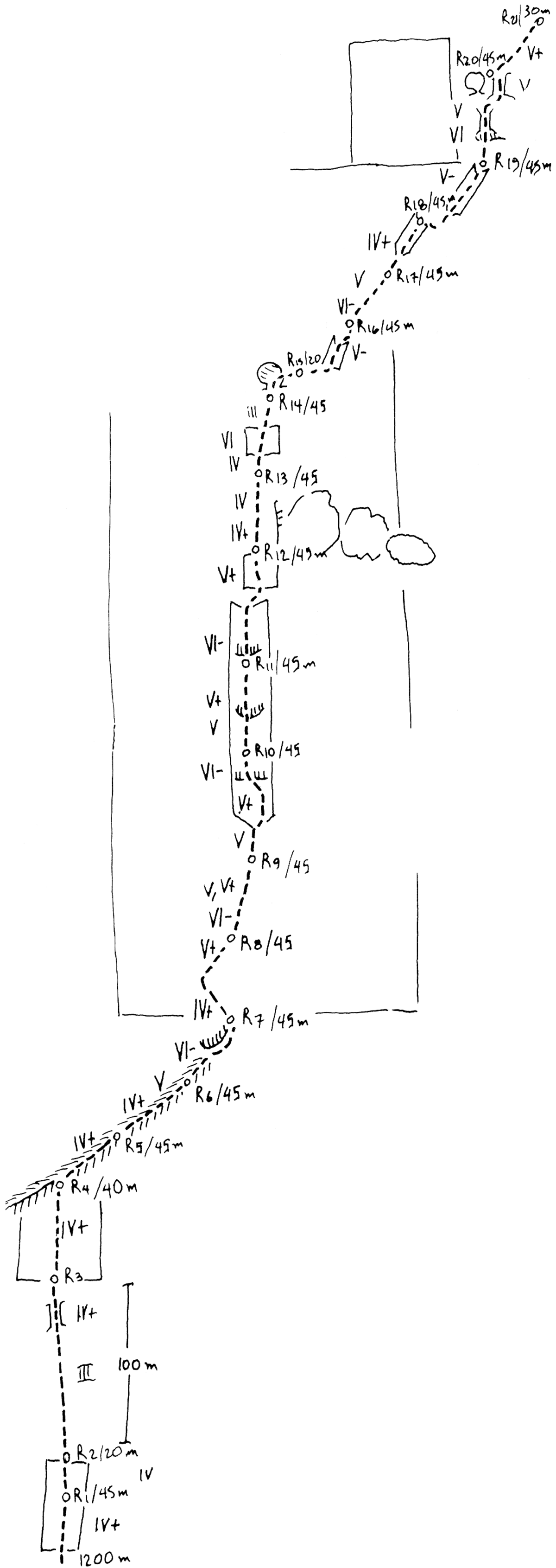 Ο βράχος στα δύσκολα περάσματα είναι πολύ καλός. Ιδιαίτερα σαθρές είναι οι σχοινιές 7, 8, 16 και 19. Ακόμα προσοχή στις λιθοπτώσεις που προκαλούν τα αγριοκάτσικα (κρι-κρι) που τραβερσάρουν στο πάνω μέρος της πλάκας. Ιδιαίτερος κίνδυνος λιθόπτωσης υπάρχει στις σχοινιές 18 και 19.