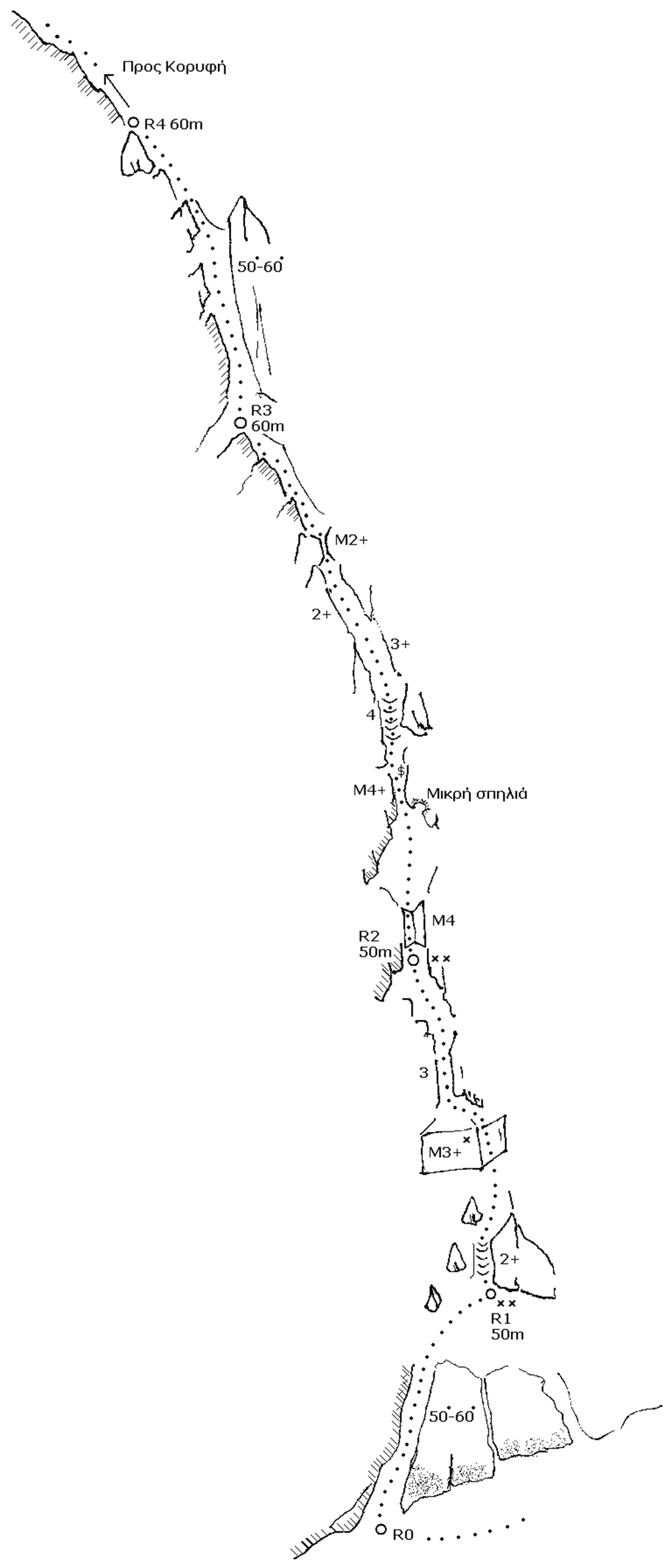 Η διαδρομή «Παππούς Ματάζο» (II 4 M4+, 220μ) ανοίχτηκε στις 16/2/2014 από τους Α. Καραπετάκο - Κ. Καρνάκη.