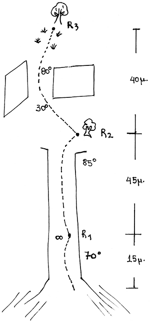 Η 1η σχοινιά (WI3+, 60μ) δεν διαθέτει ρελέ το οποίο πρέπει να γίνει στα δεξιά σε δέντρο.