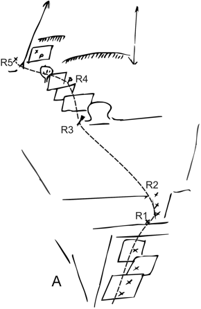 Η γραμμή είναι εύκολη στην εύρεσή της, αφού στο μεγαλύτερο μέρος ακολουθεί την προφανή κόψη. Γενικά χωρίζεται σε τρία τμήματα, όπου το πρώτο αποτελείται από 2 σχοινιές, μετά ένα μεγάλο διάζωμα και τελικά 2 ακόμα μικρές σχοινιές πάνω από τη σπηλιά, το δεύτερο αποτελείται από την κόψη μέχρι τη ζούγκλα και το τρίτο αποτελείται από το πάνω κομμάτι με το δέντρο.
