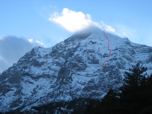 Η γραμμή κινείται αρκετά δεξιά από το «Μακρηνάρι», στη μέση σχεδόν της ορθοπλαγιάς, ακολουθώντας εύκολες κόψεις μέχρι την κορυφή. Η ανάβαση, αν εξαιρέσει κανείς τα πολύ επικίνδυνα και ασταθή χιόνια όταν δεν υπάρχουν καλές συνθήκες, δεν έχει ιδιαίτερες τεχνικές δυσκολίες, μόνο κάποια τοπικά, σύντομα, κάθετα μικτά περάσματα.