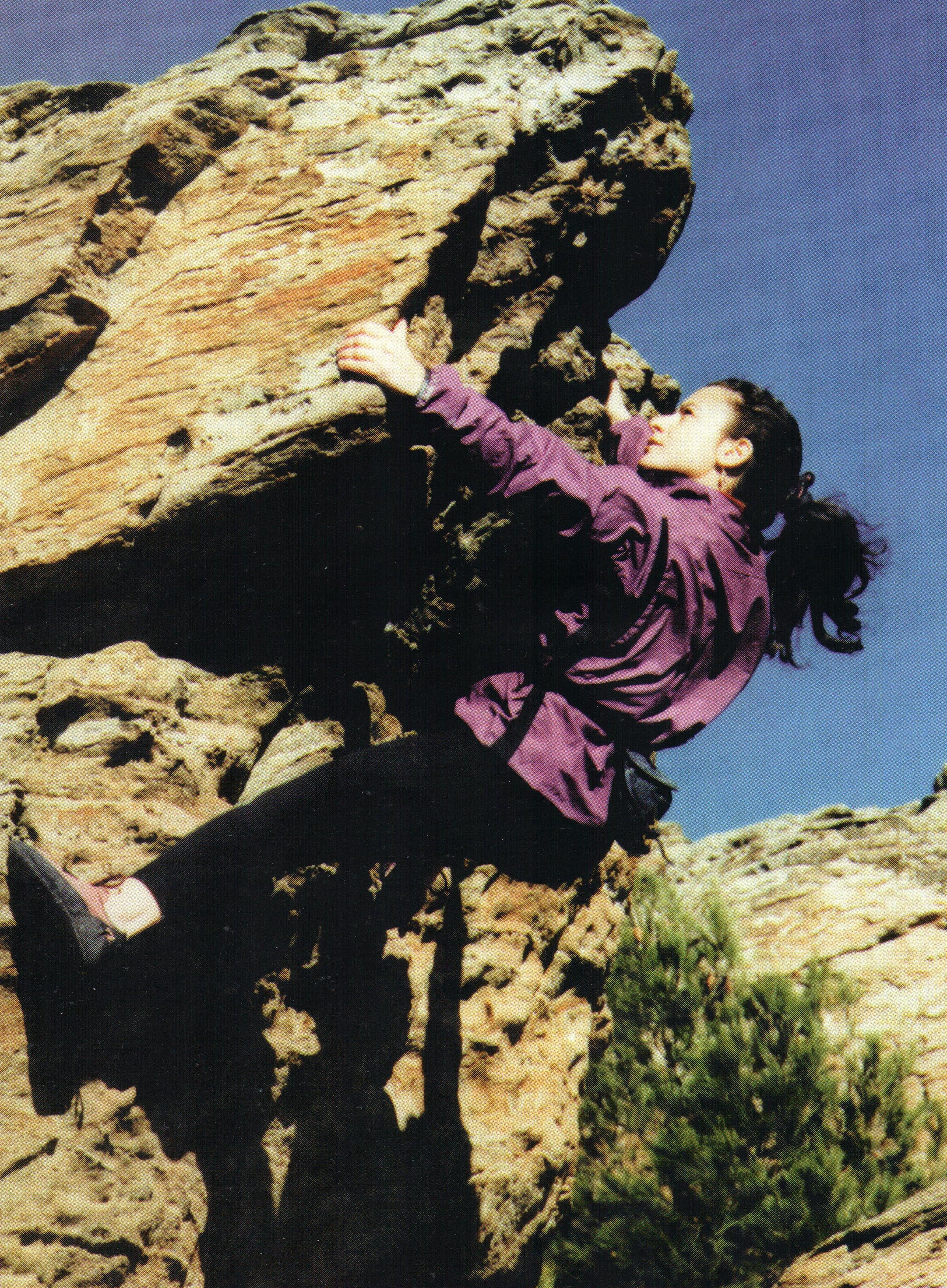 Because there are no permanent belays at all, in order to do the problems with top-rope, we must have nuts and friends of all sizes, as well as long belts.