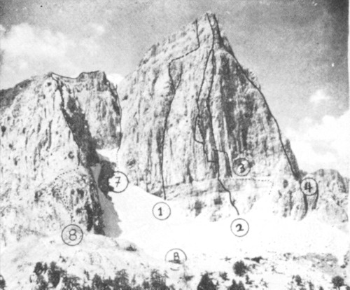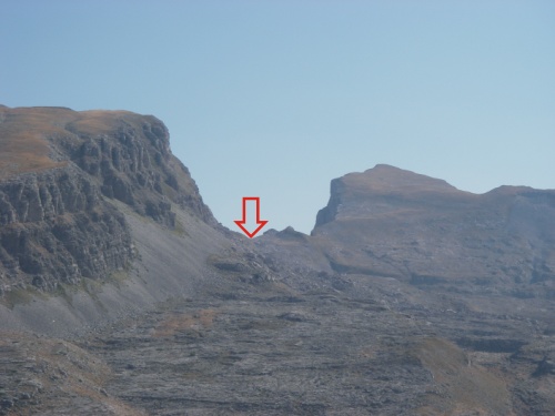 Down to the left you can see the cave which offers for spending the night over. You can also see the couloir which is used for making drinkable water.
