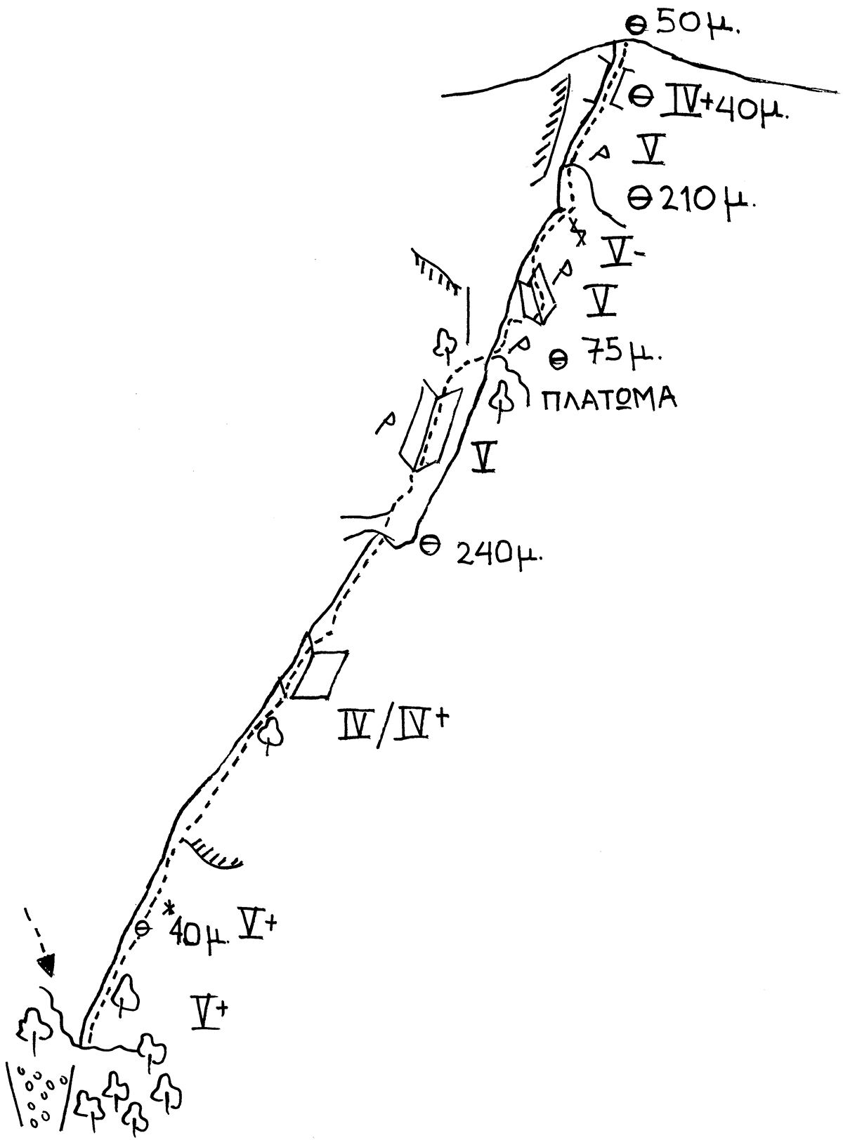 The first ascent of the route “Butterfly ridge” (V+, 650m ) was realized on 17/6/2001 by G. Kolonis - Th. Chatzisyrlis.