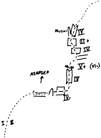 The first ascent of the route "Mikri exodos" (VI-, 70m) was realized on 24/7/1994 by V. Vroutsis - T. Petroheilos.
