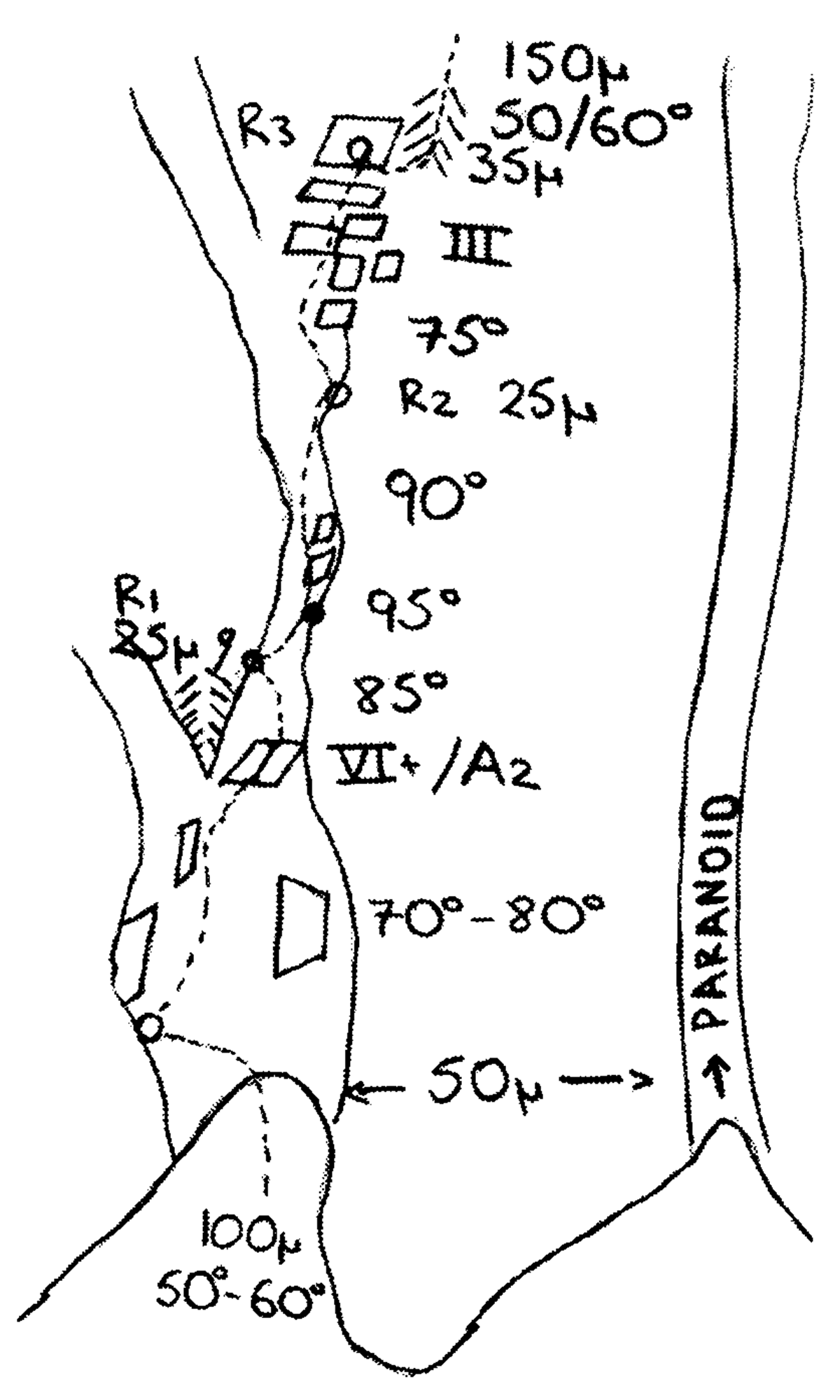 The first ascent of the route “The same mistake” (III+ 4 M4+, 330m) was realized on 10/1/1998 by Chr. Belogiannis - D. Bourazanis - N. Chatzis.